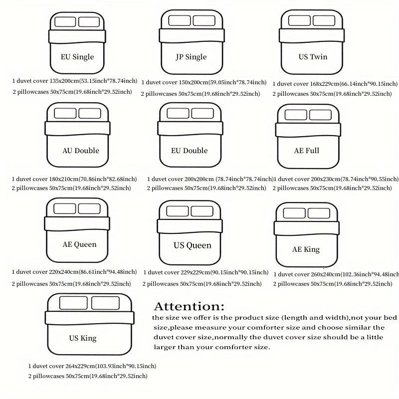| Size | 135x200cm 3pcs, 150x210cm 3pcs, 168x229cm 3pcs, 180x210cm 3pcs, 200x200cm 3pcs, 200x230cm3pcs, 220x240cm 3pcs, 229x229cm 3pcs, 264x229cm 3pcs, 260x240cm 3pcs |