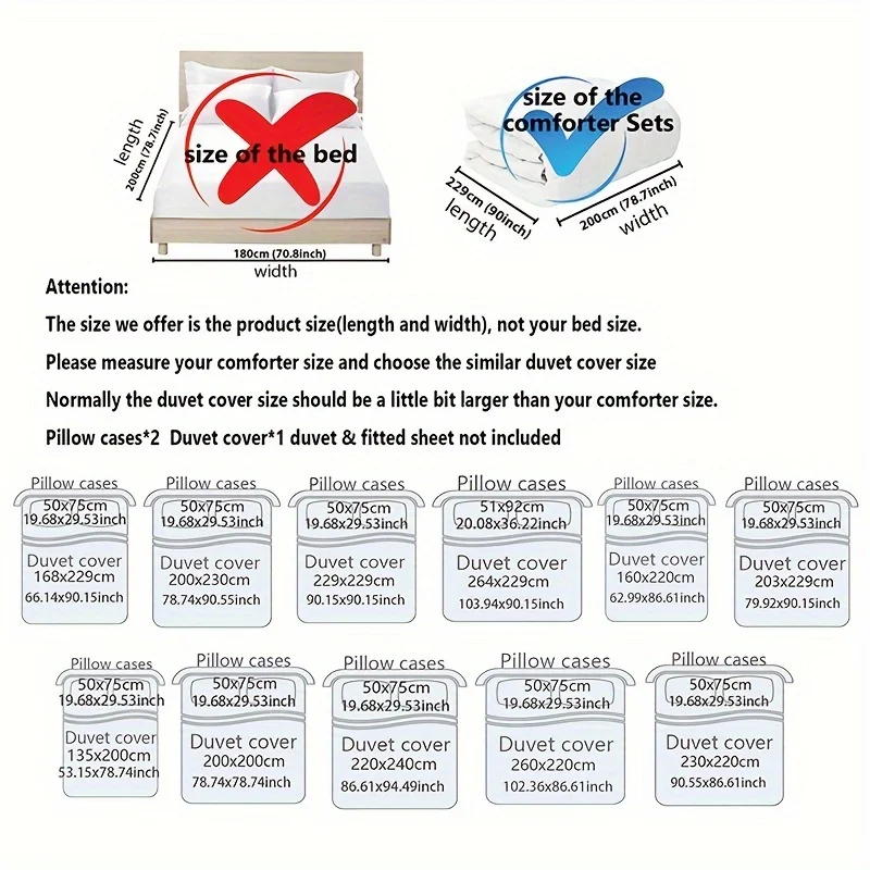 | Size | AU Single(140x210cm), AU Double(180x210cm), AU Queen(210x210cm), AU King(240x210cm), US Twin(172x218cm), US Full(200x230cm), US Queen(228x228cm), US King(264x229cm), EU Twin(135x200cm), EU Double(200x200cm), EU King(240x220cm), EU SK(260x220cm) |
