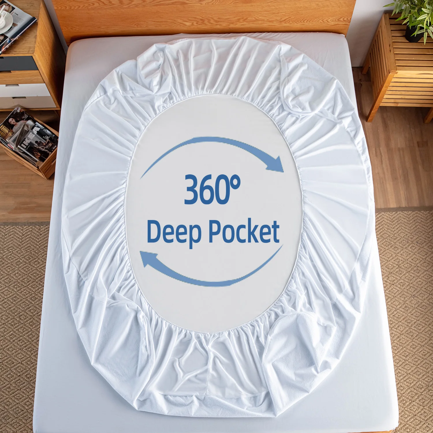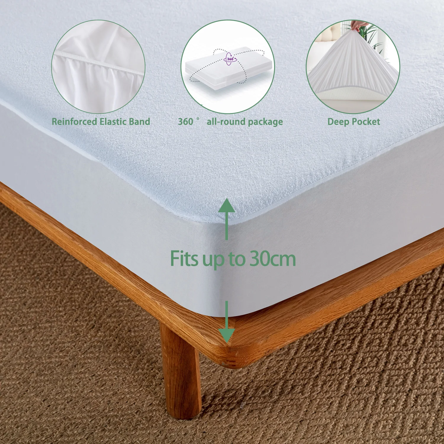 Waterproof Terry Cloth Mattress Protector Cover, Breathable Microfiber with Noiseless Fitted Sheet with Deep Pocket for Bed Quee